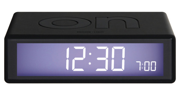 Op de Lexon Flip wekker staat groot on en off op de boven- en onderkant. Afhankelijk of je wel of niet een wekker wilt zetten keer je deze Lexon Flip wekker simpelweg om.